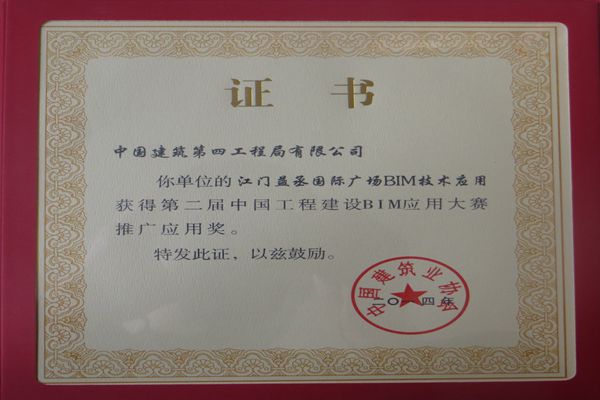 第二届中国工程建设BIM应用大赛推广应用奖